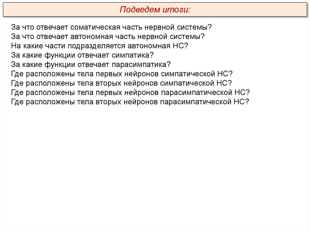 Подведем итоги:За что отвечает соматическая часть нервной системы?