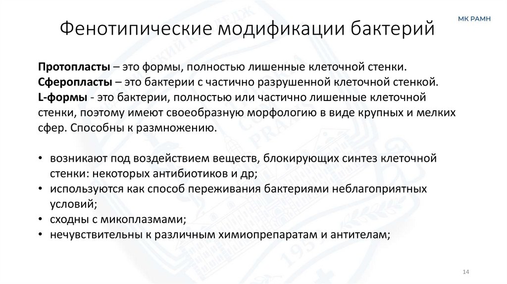 Фенотипические модификации бактерийПротопласты – это формы, полностью лишенные клеточной стенки.
