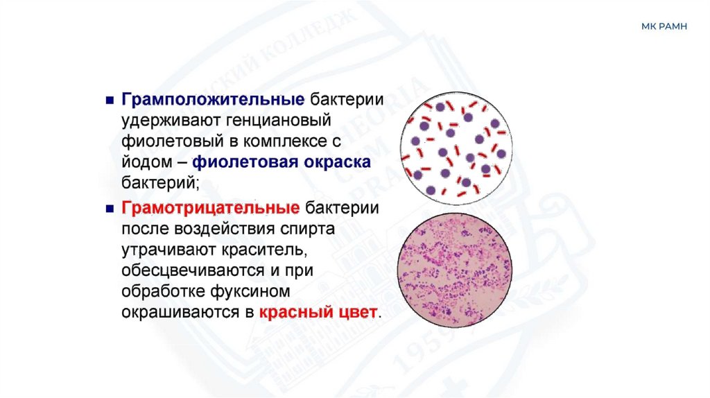 Все бактерии в зависимости от окраски по Граму подразделяют на 2 группы: