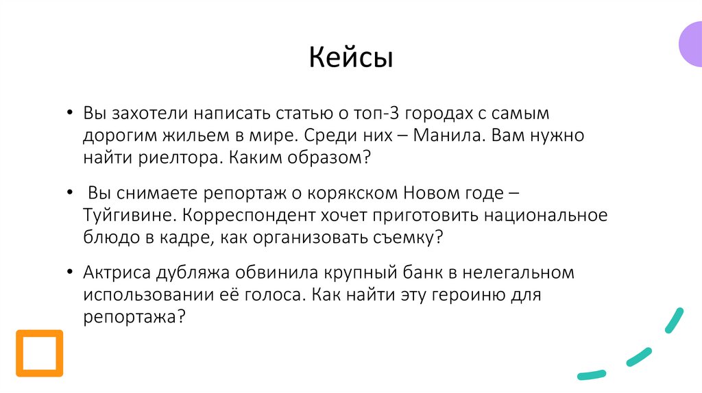 Кейсы• Вы захотели написать статью о топ-3 городах с самым