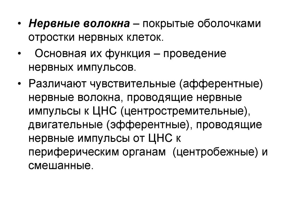 • Нервные волокна – покрытые оболочкамиотростки нервных клеток.