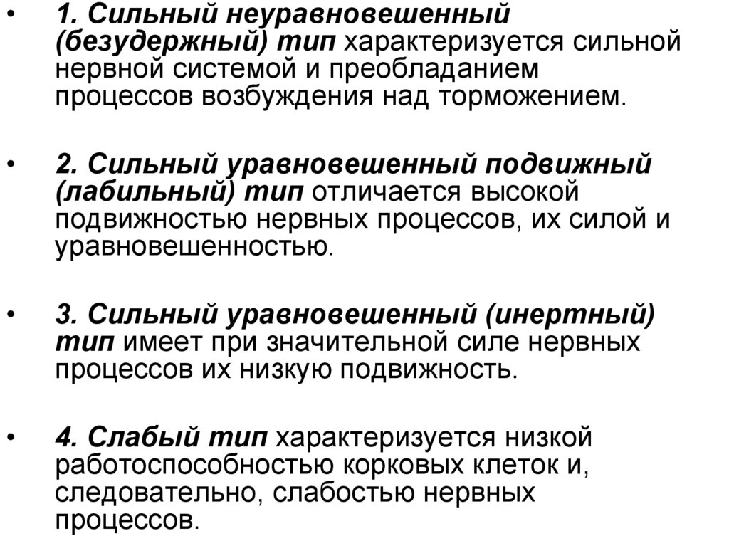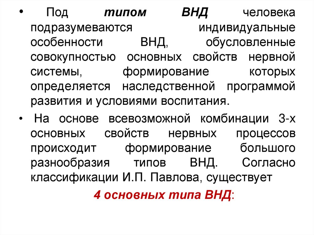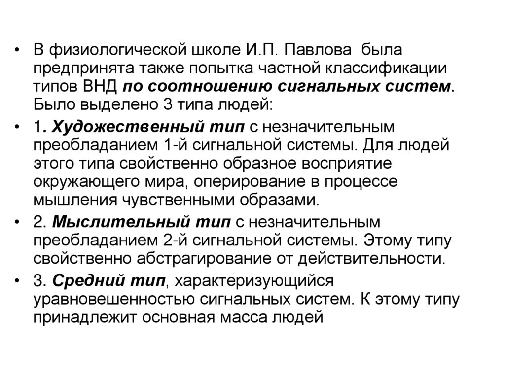 • В физиологической школе И.П. Павлова былапредпринята также попытка частной классификации