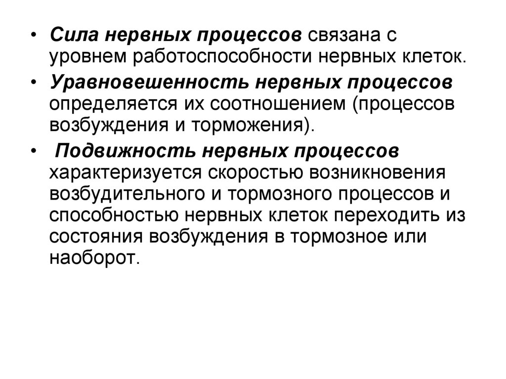 • Сила нервных процессов связана суровнем работоспособности нервных клеток.