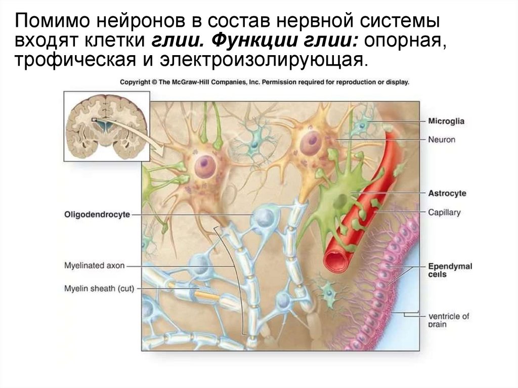 Помимо нейронов в состав нервной системывходят клетки глии. Функции глии: опорная,
