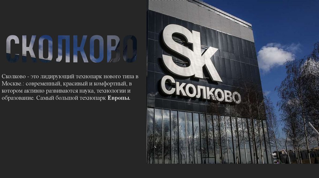 Сколково - это лидирующий технопарк нового типа вМоскве.: современный, красивый и комфортный, в