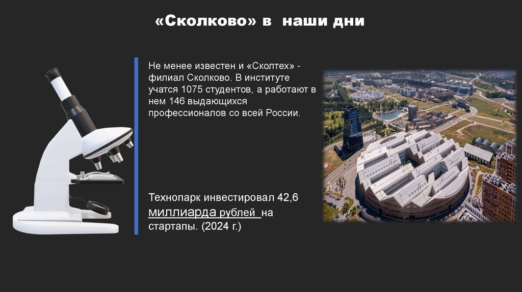 «Сколково» в наши дниНе менее известен и «Сколтех» филиал Сколково. В институте