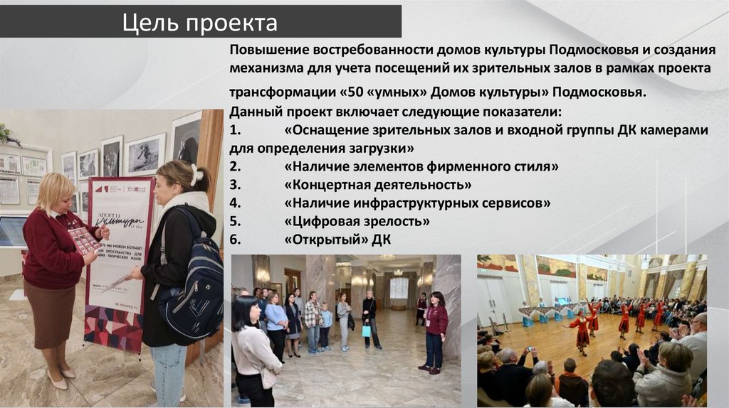 Цель проектаПовышение востребованности домов культуры Подмосковья и создания