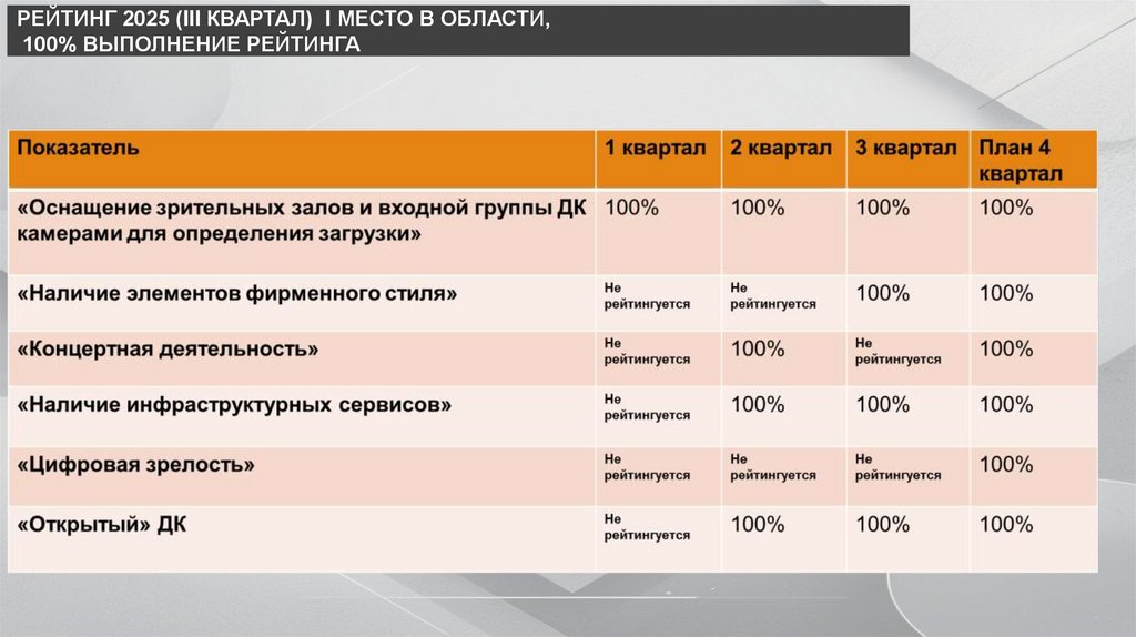 РЕЙТИНГ 2025 (III КВАРТАЛ) I МЕСТО В ОБЛАСТИ,100% ВЫПОЛНЕНИЕ РЕЙТИНГА