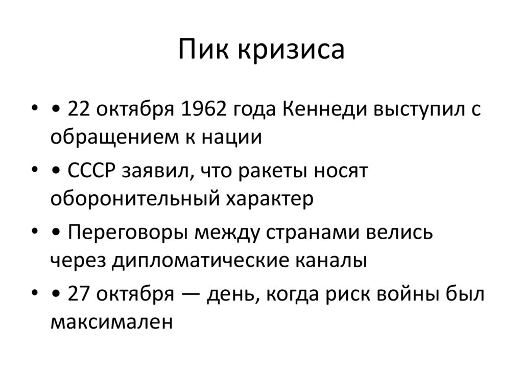 Пик кризиса• • 22 октября 1962 года Кеннеди выступил с