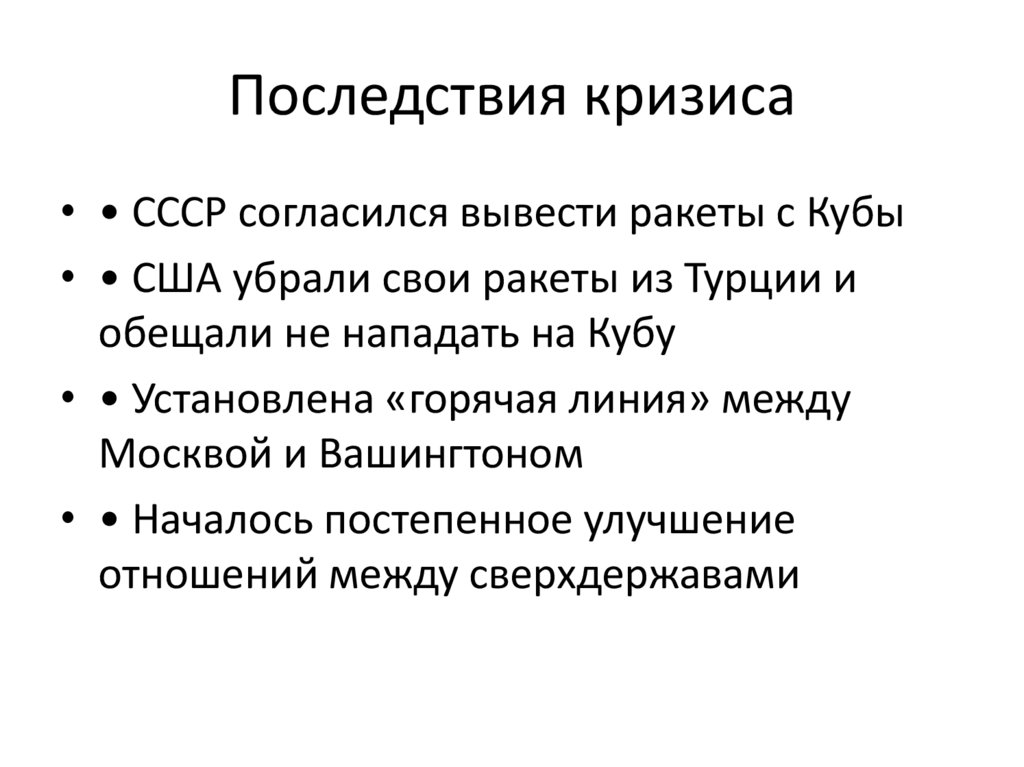Последствия кризиса• • СССР согласился вывести ракеты с Кубы