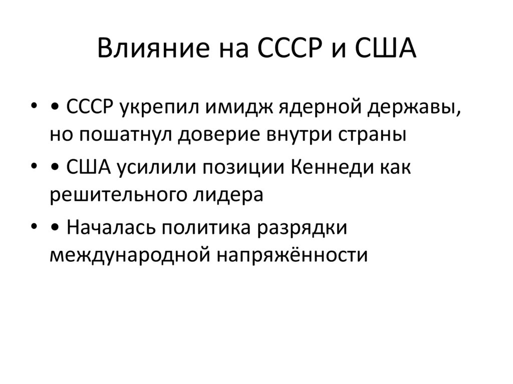 Влияние на СССР и США• • СССР укрепил имидж ядерной державы,