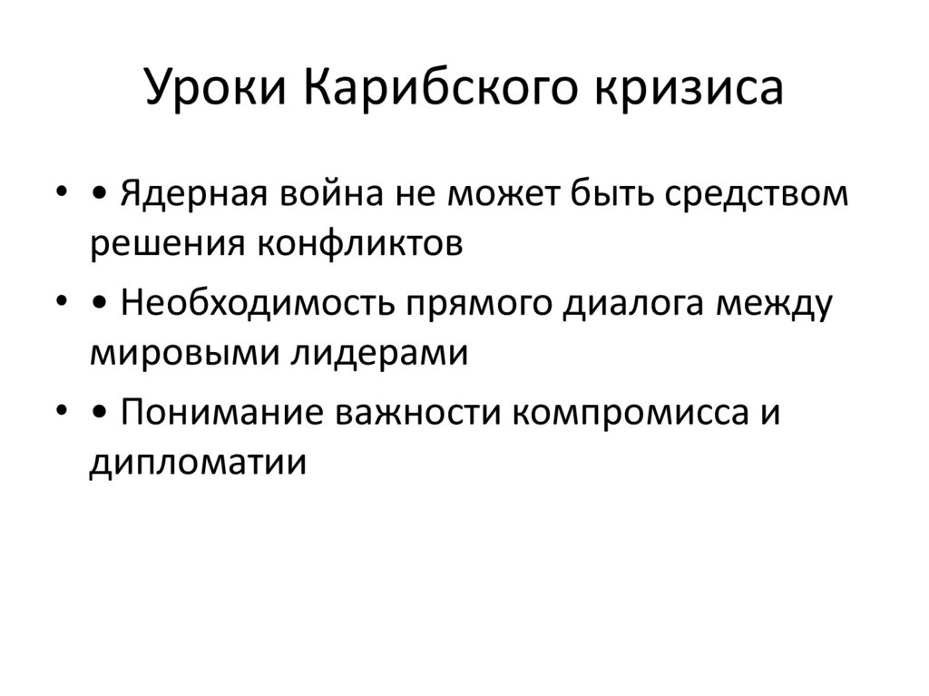 Уроки Карибского кризиса• • Ядерная война не может быть средством