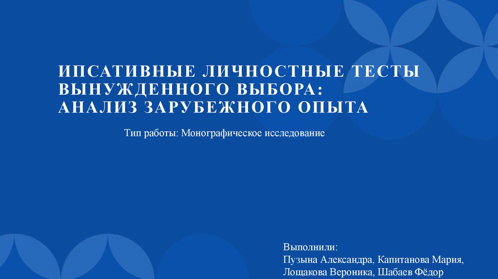 1. Ипсативные личностные тесты вынужденного выбора: анализ зарубежного опыта