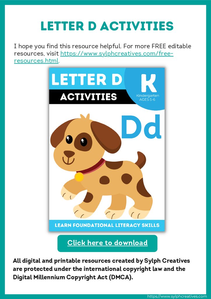 LETTER D ACTIVITIESI hope you find this resource helpful. For more FREE editable