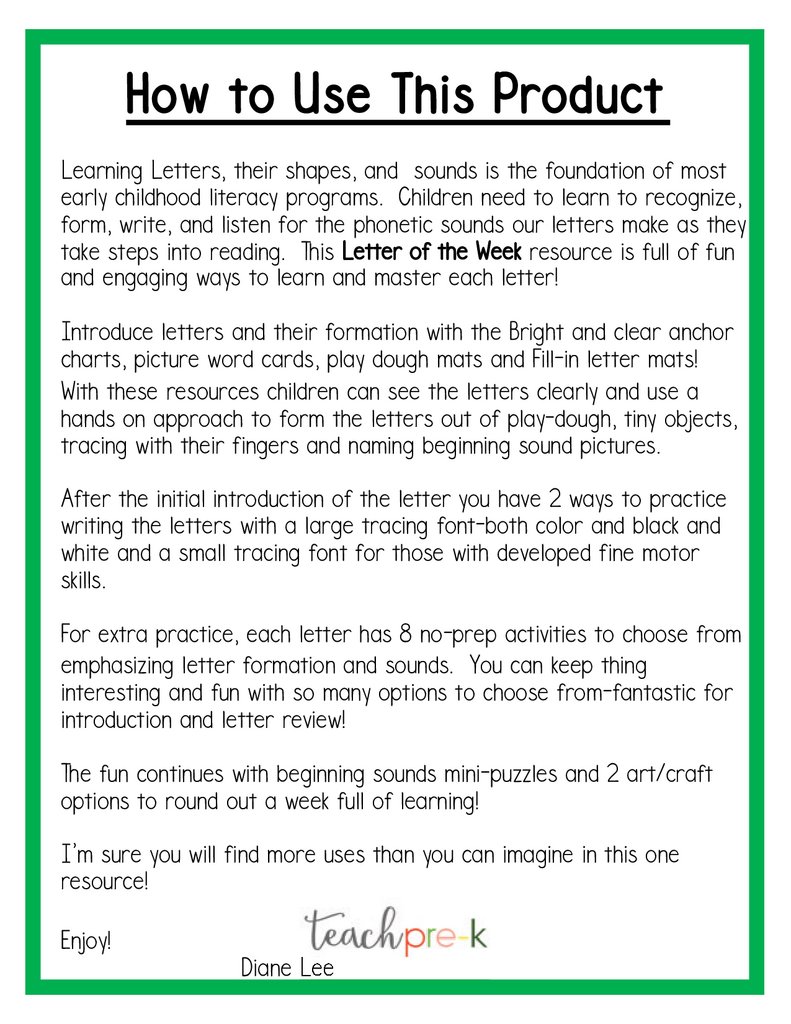 How to Use This ProductLearning Letters, their shapes, and sounds is the foundation of most