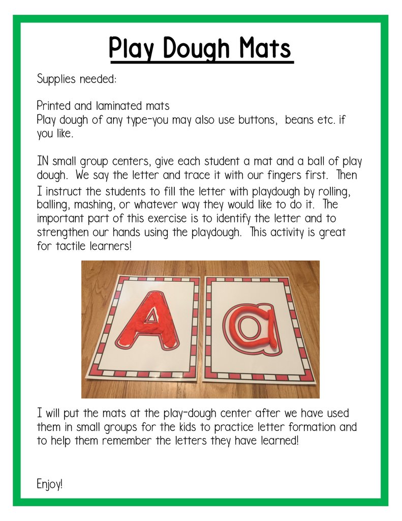 charts, picture word cards, play dough mats and Fill-in letter mats!