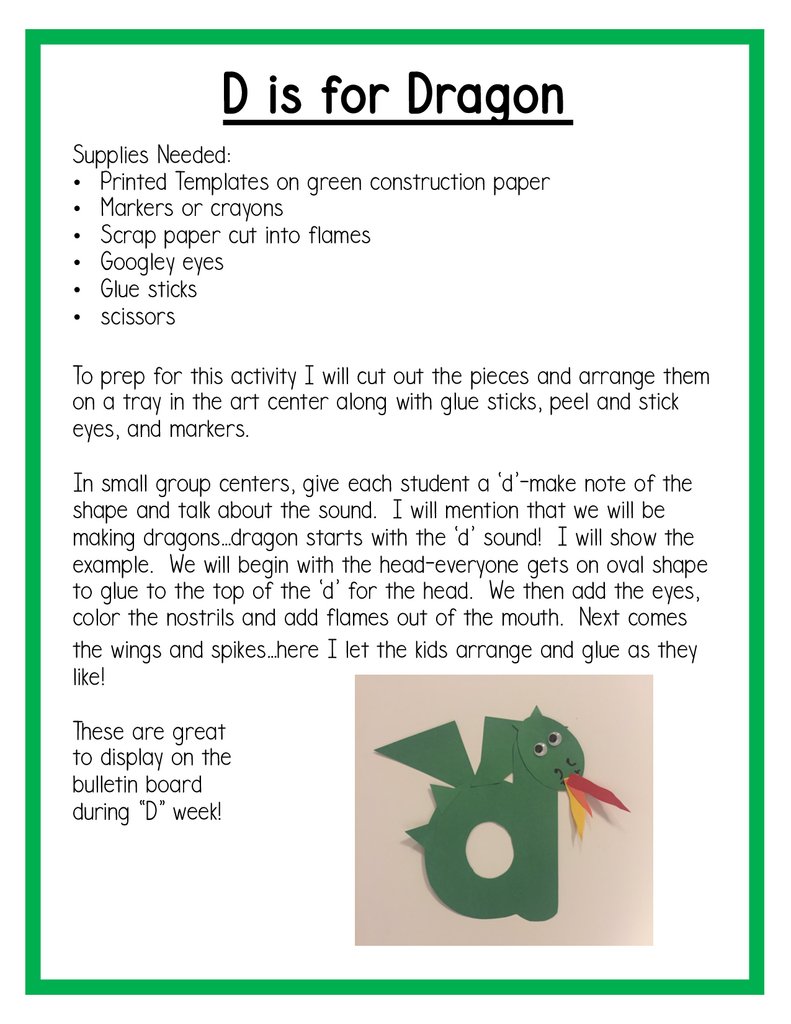 making dragons…dragon starts with the ‘d’ sound! I will show the