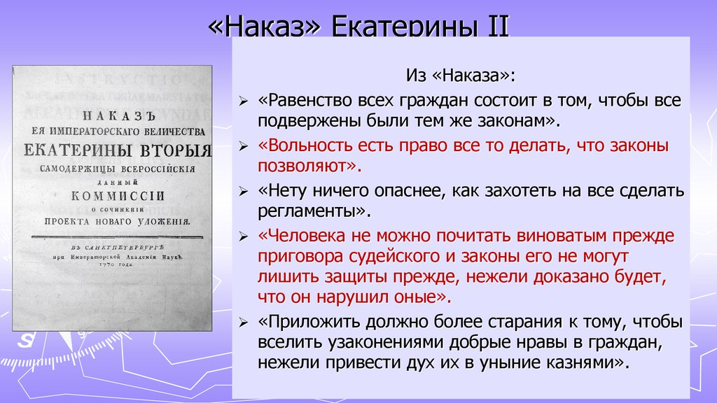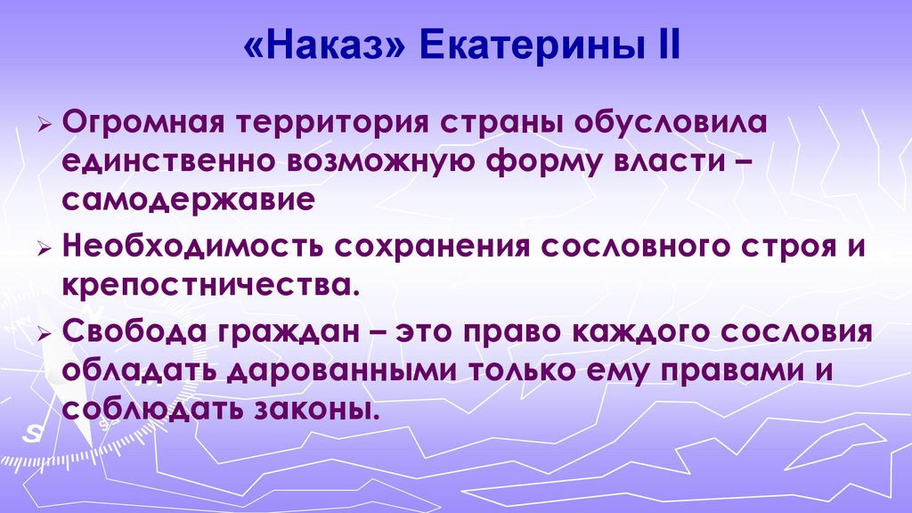 «Наказ» Екатерины II➢ Огромная территория страны обусловила