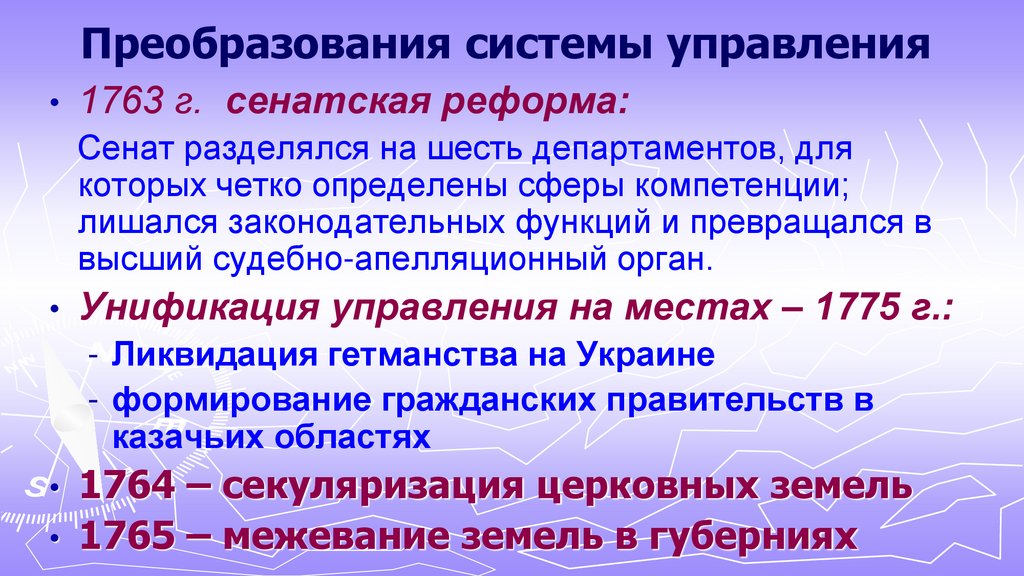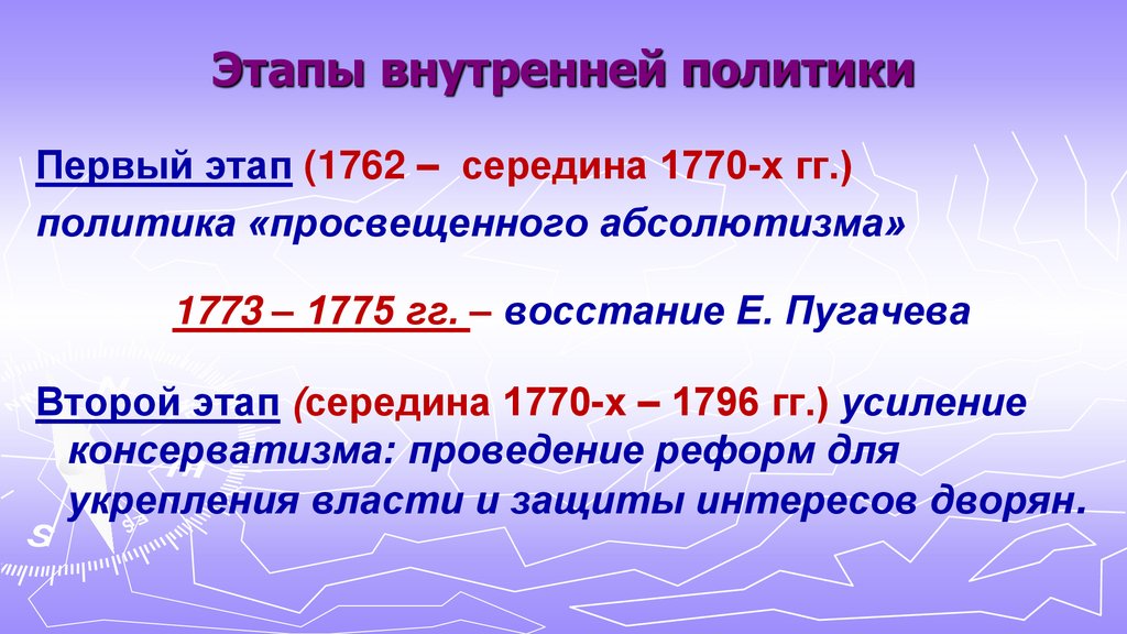 Этапы внутренней политикиПервый этап (1762 – середина 1770-х гг.)