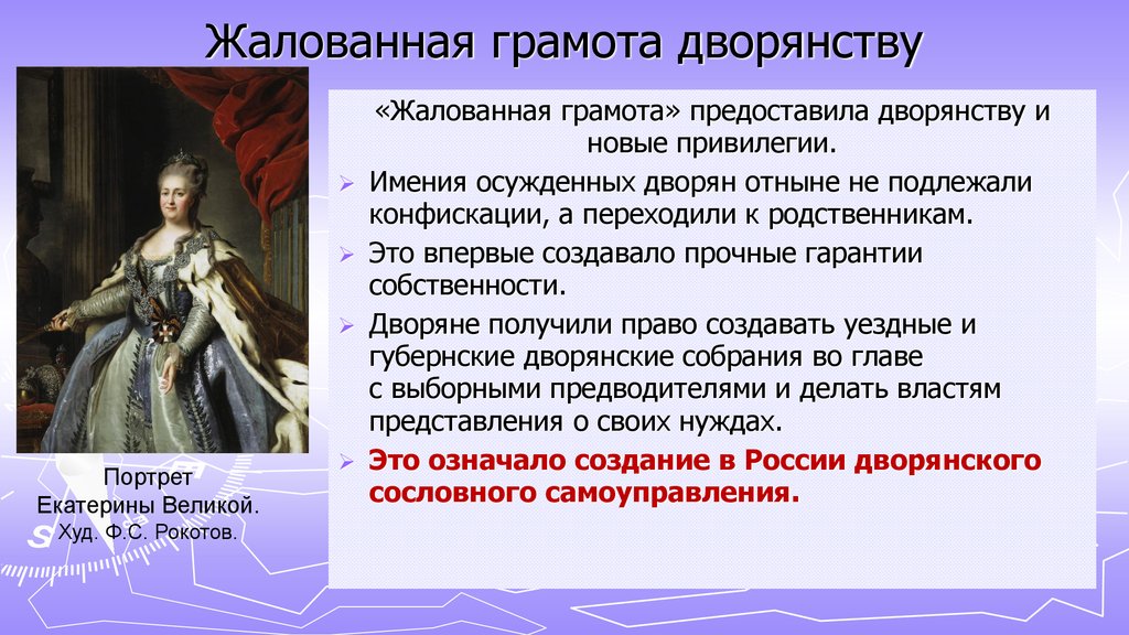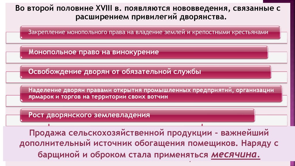 Во второй половине XVIII в. появляются нововведения, связанные срасширением привилегий дворянства.