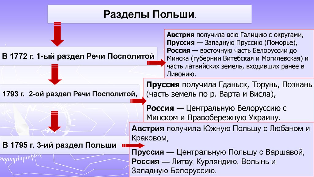 Разделы Польши.В 1772 г. 1-ый раздел Речи Посполитой