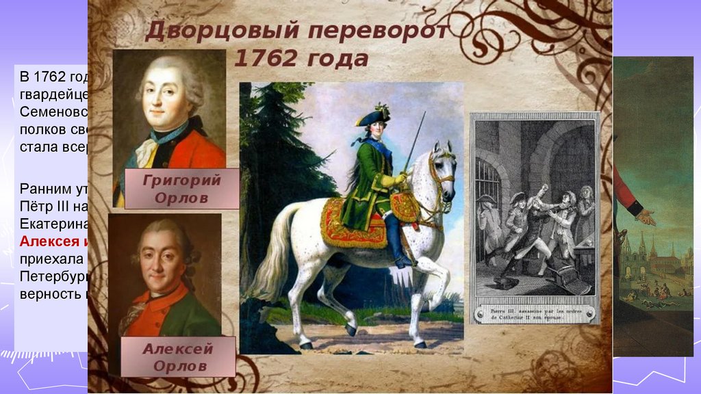 Переворот 1762г.В 1762 году Екатерина с помощью