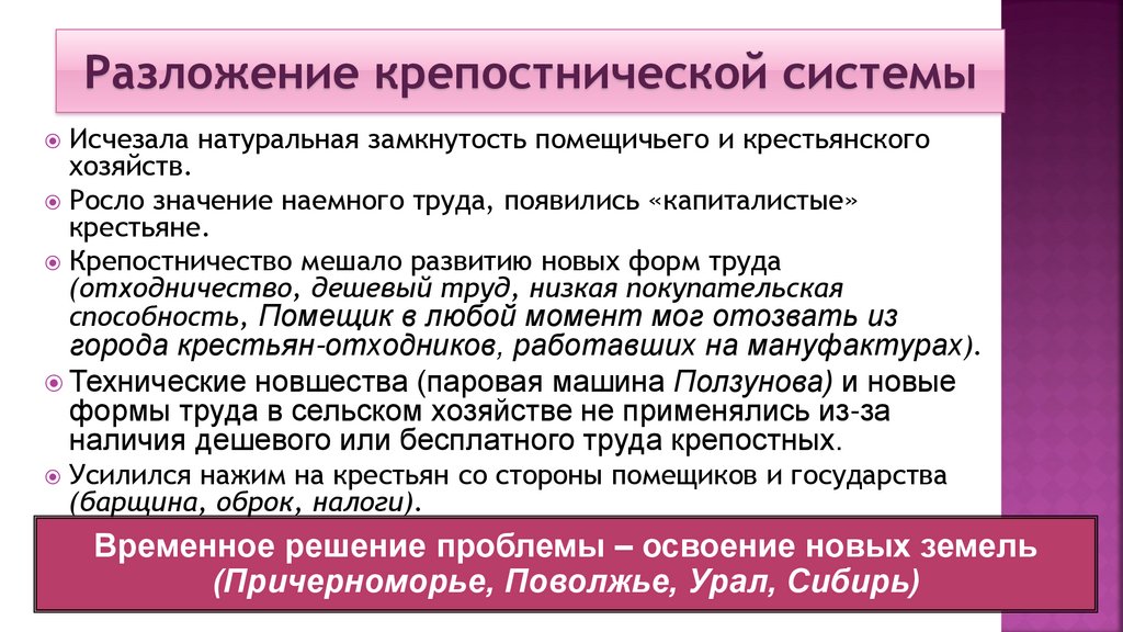 Разложение крепостнической системыИсчезала натуральная замкнутость помещичьего и крестьянского