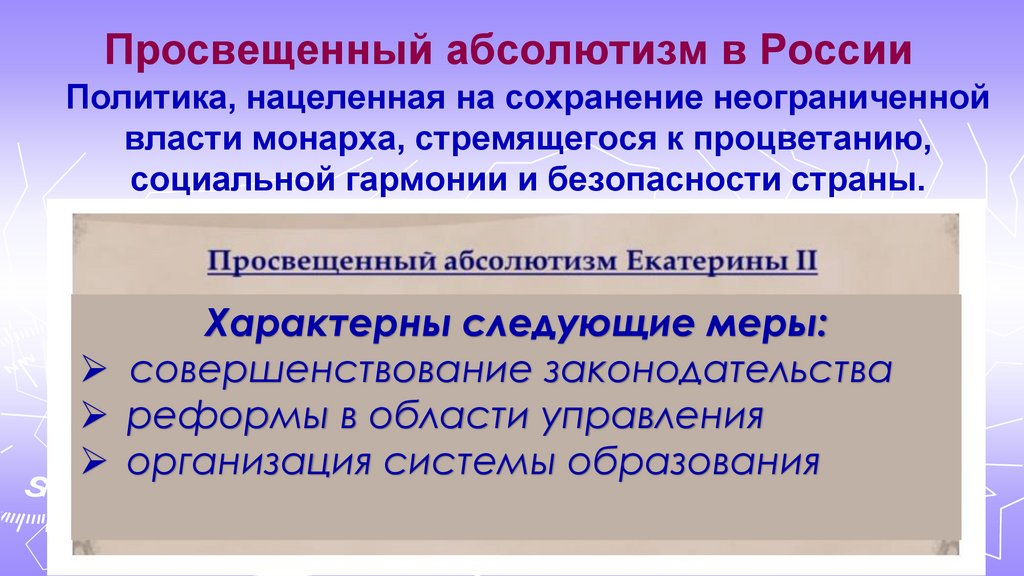 Просвещенный абсолютизм в РоссииПолитика, нацеленная на сохранение неограниченной
