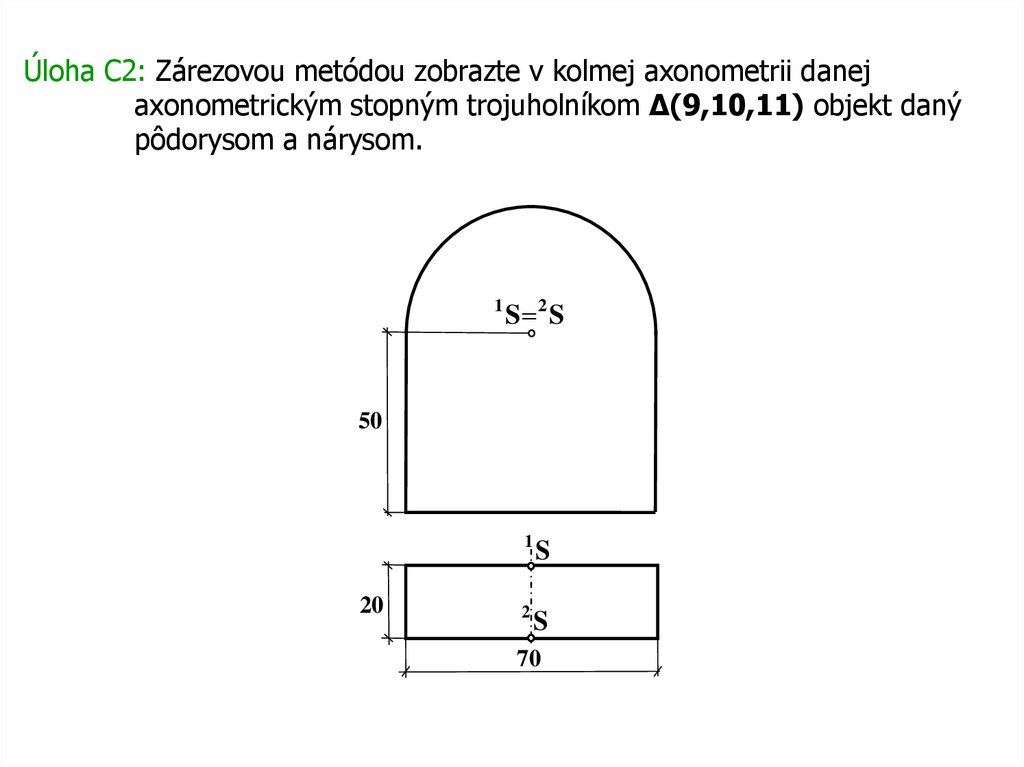 Úloha C2: Zárezovou metódou zobrazte v kolmej axonometrii danejaxonometrickým stopným trojuholníkom Δ(9,10,11) objekt daný