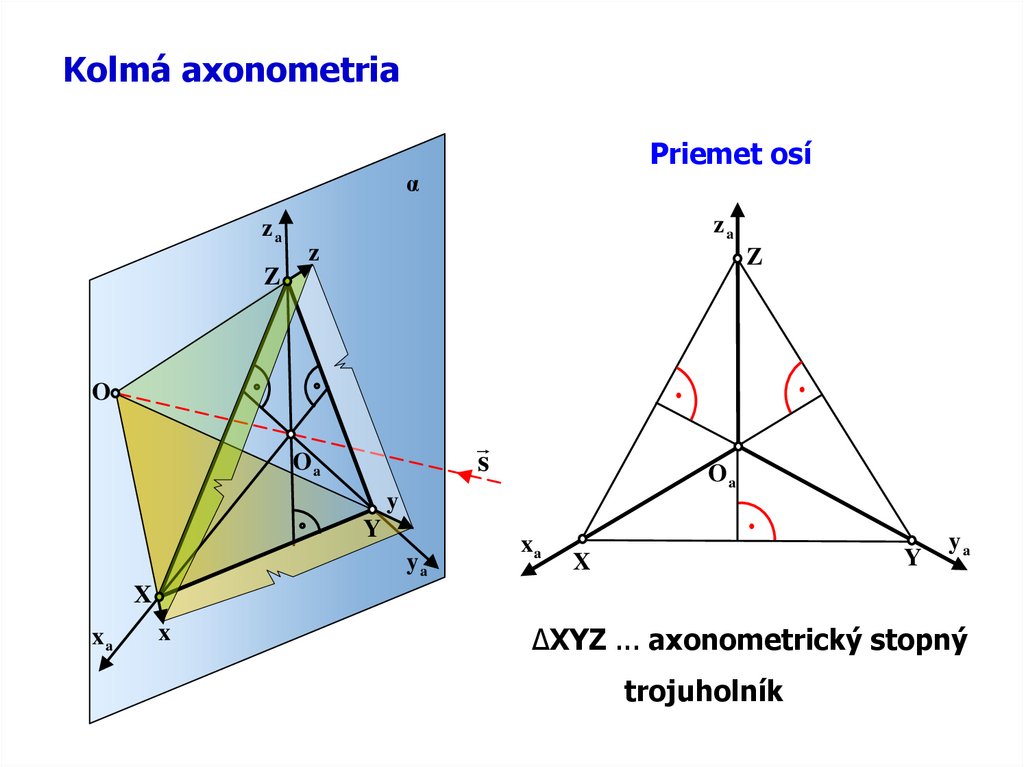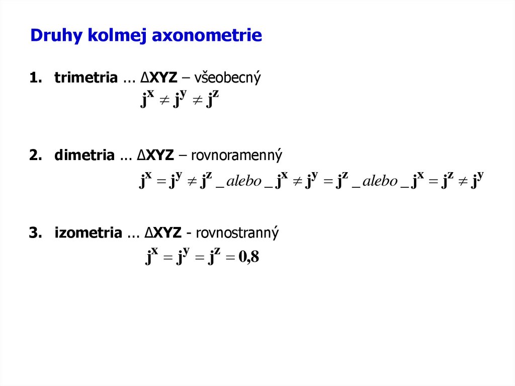 Druhy kolmej axonometrie1. trimetria ... ΔXYZ – všeobecný