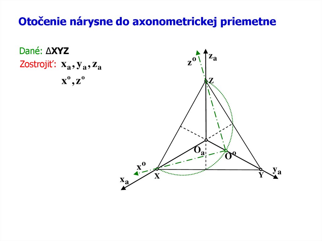 Otočenie pôdorysne do axonometrickej priemetneDané: ΔXYZ