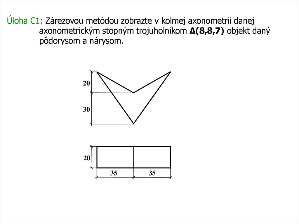Úloha C1: Zárezovou metódou zobrazte v kolmej axonometrii danejaxonometrickým stopným trojuholníkom Δ(8,8,7) objekt daný
