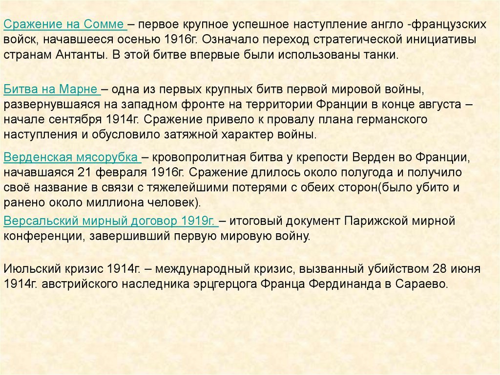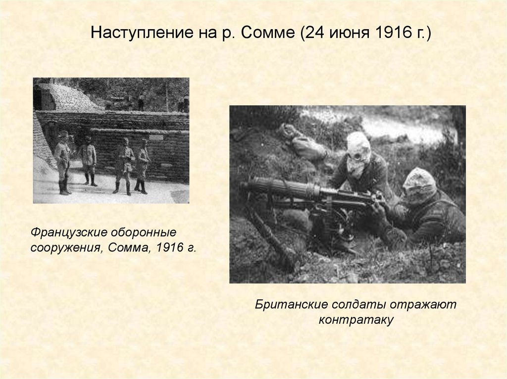 Сражение на Сомме – первое крупное успешное наступление англо -французскихвойск, начавшееся осенью 1916г. Означало переход стратегической инициативы