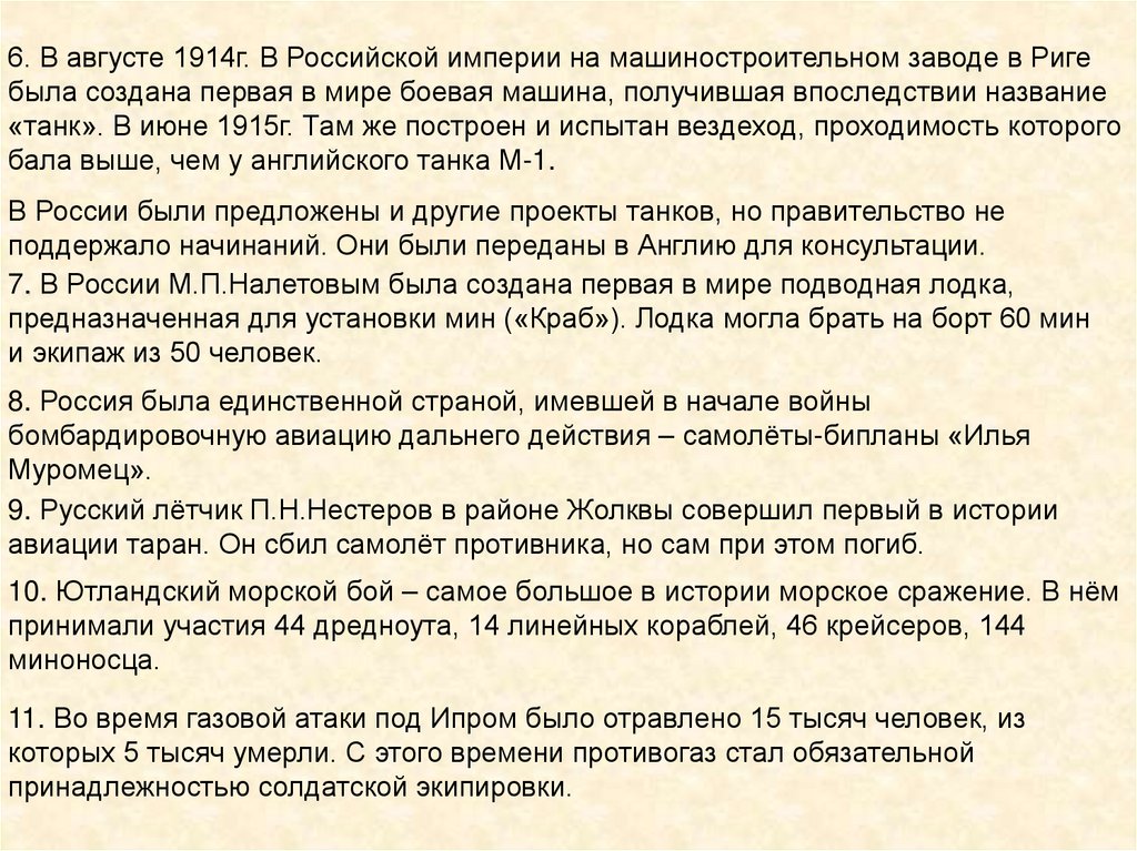 6. В августе 1914г. В Российской империи на машиностроительном заводе в Ригебыла создана первая в мире боевая машина, получившая впоследствии название