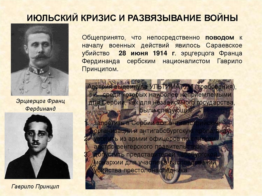 1914г. австрийского наследника эрцгерцога Франца Фердинанда в Сараево.