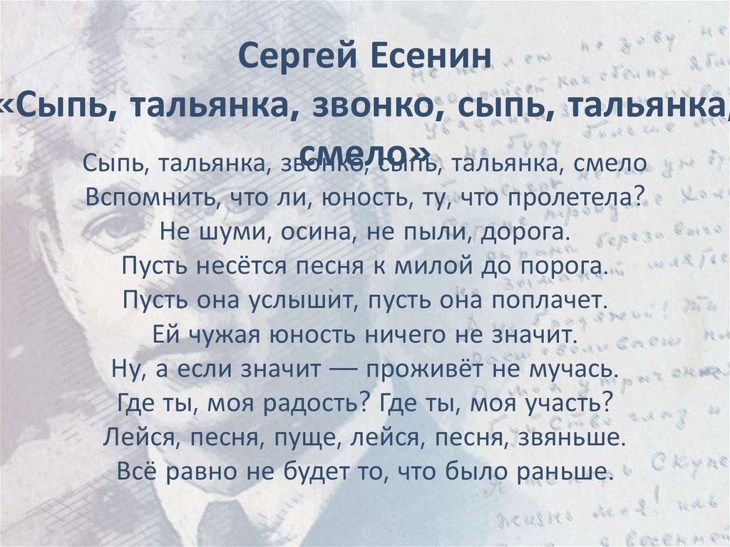 Сергей Есенин«Сыпь, тальянка, звонко, сыпь, тальянка,