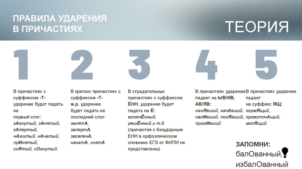 ПРАВИЛА УДАРЕНИЯВ ПРИЛАГАТЕЛЬНЫХ