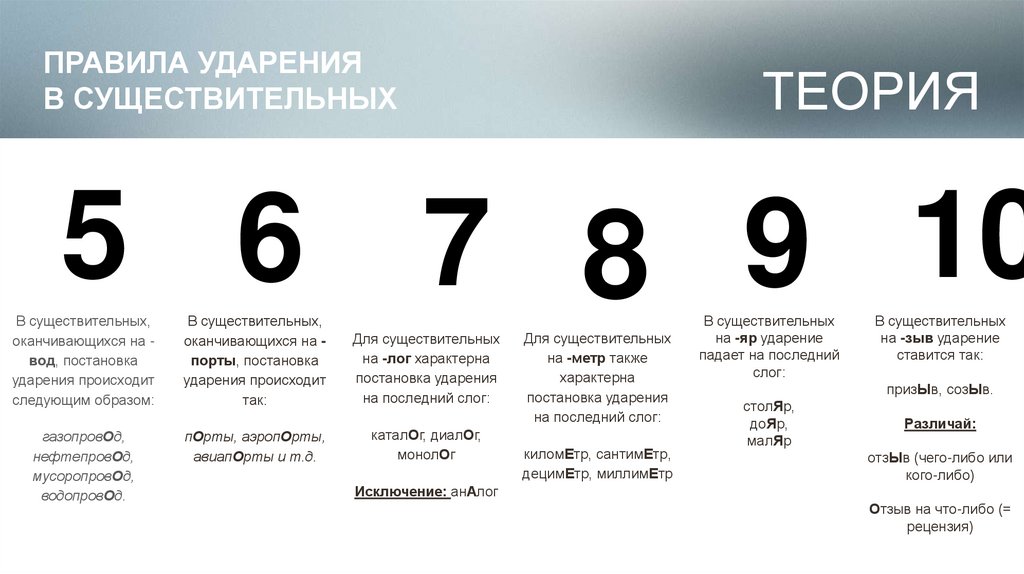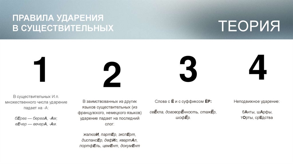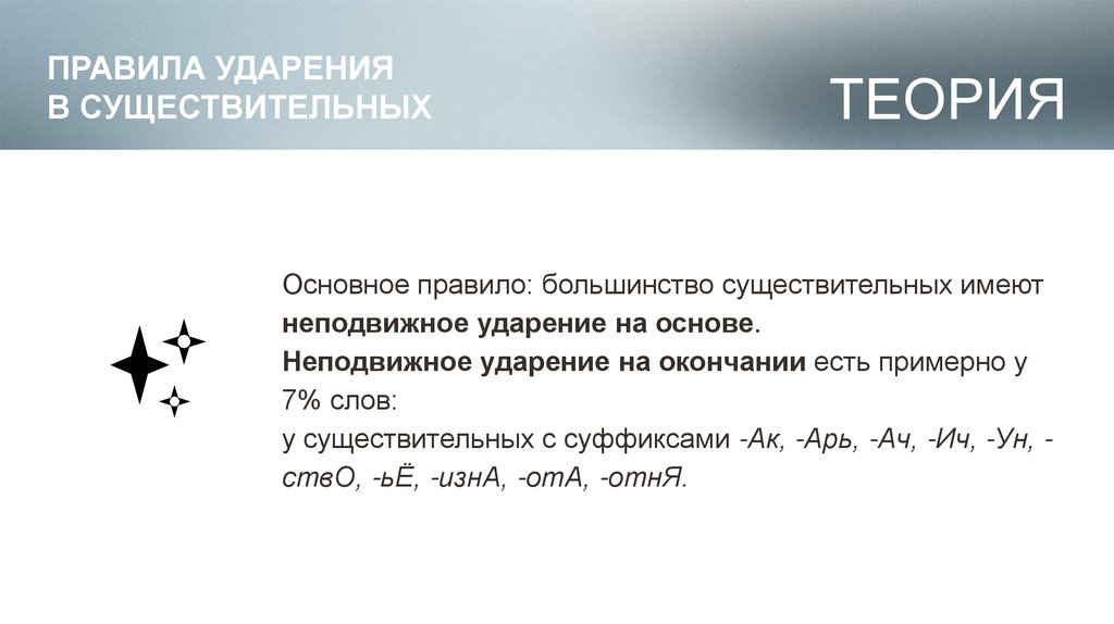 ПРАВИЛА УДАРЕНИЯВ СУЩЕСТВИТЕЛЬНЫХ