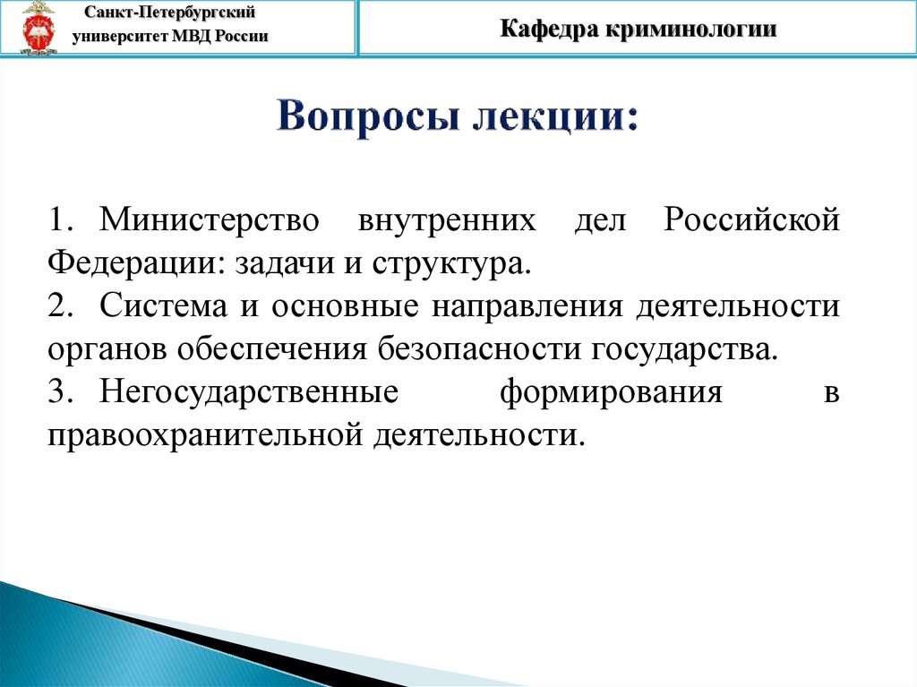 6. Вопрос 1. Министерство внутренних дел Российской Федерации: задачи и структура.