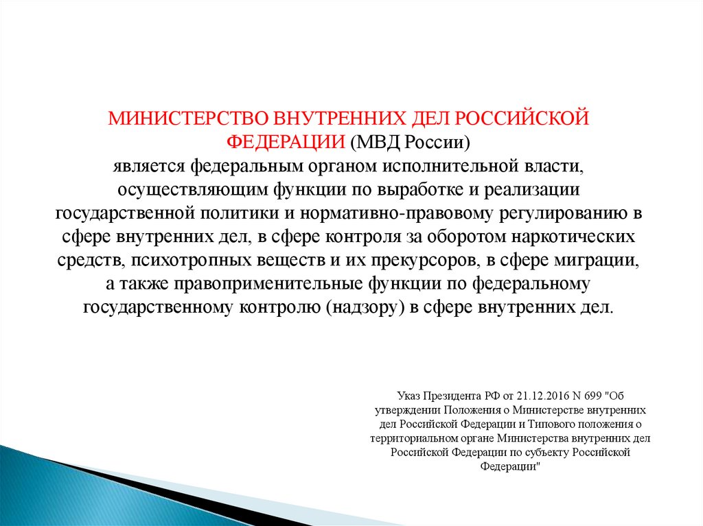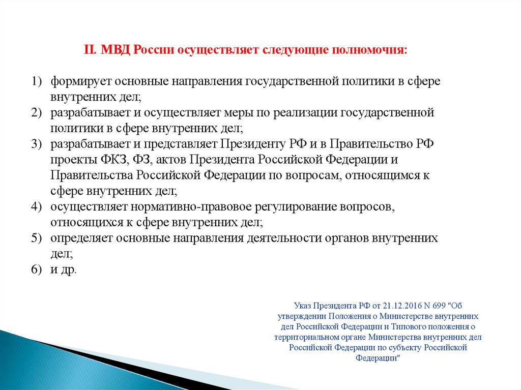 8. Указ Президента РФ от 21.12.2016 N 699 "Об утверждении Положения о Министерстве внутренних дел