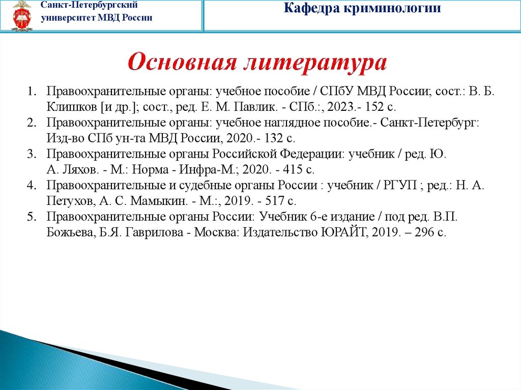 1. Правоохранительные органы: учебное пособие / СПбУ МВД России; сост.: В. Б.