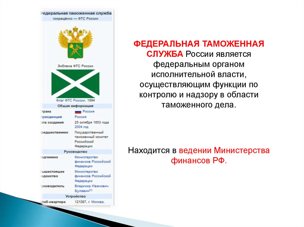 ФЕДЕРАЛЬНАЯ ТАМОЖЕННАЯ СЛУЖБА РФ