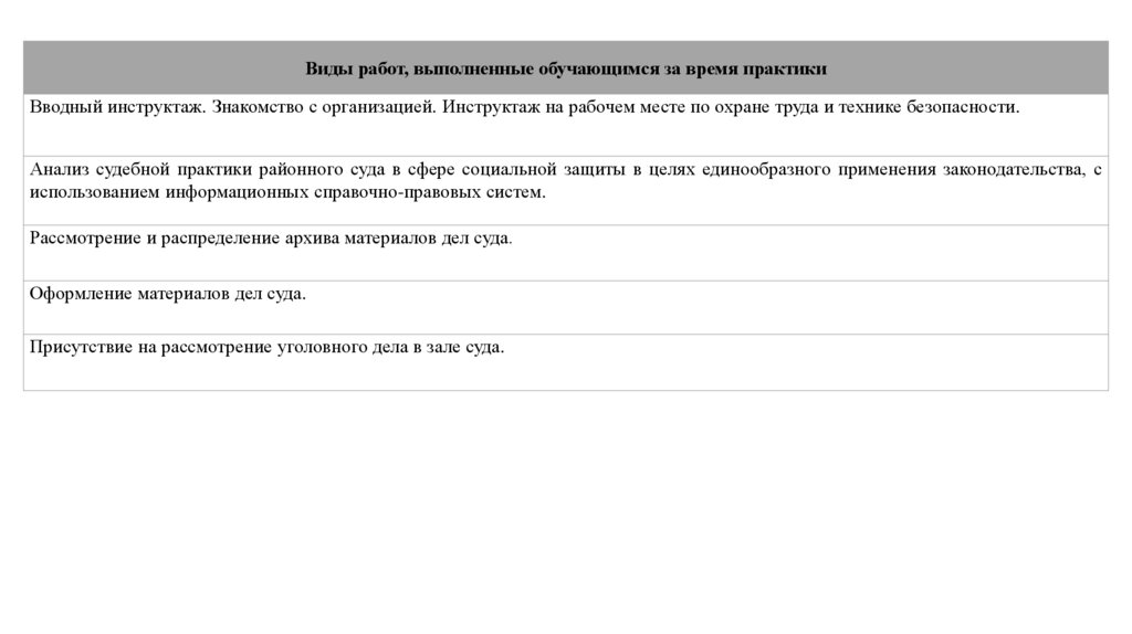 Виды работ, выполненные обучающимся за время практикиВводный инструктаж. Знакомство с организацией. Инструктаж на рабочем месте по охране труда и технике безопасности.