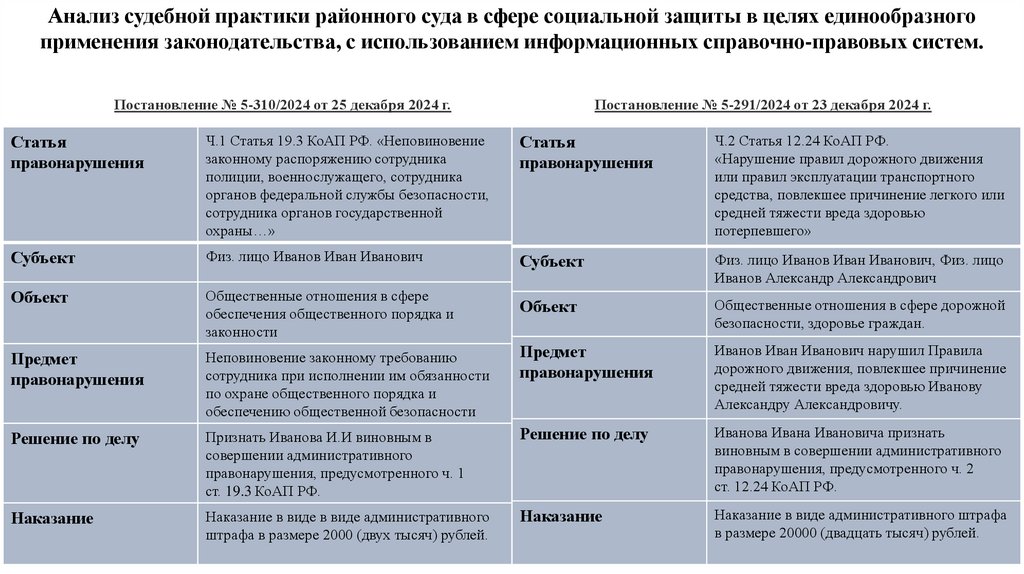 Анализ судебной практики районного суда в сфере социальной защиты в целях единообразногоприменения законодательства, с использованием информационных справочно-правовых систем.