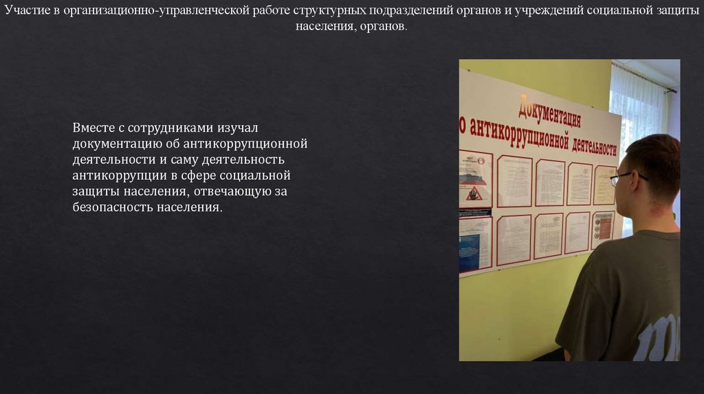 Участие в организационно-управленческой работе структурных подразделений органов и учреждений социальной защитынаселения, органов.