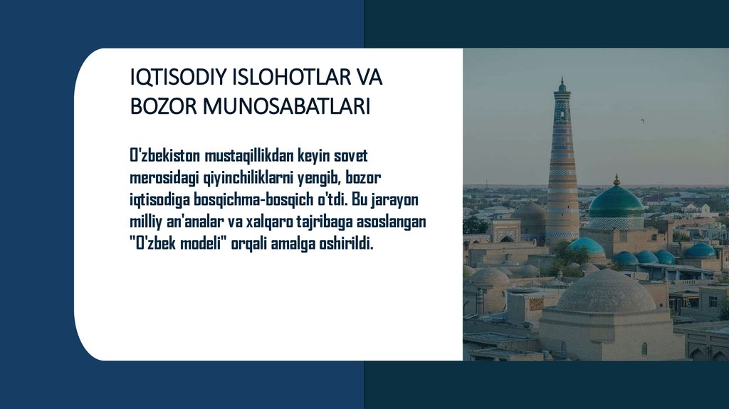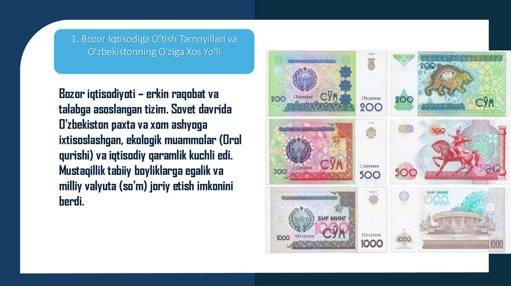 1. Bozor Iqtisodiga O'tish Tamoyillari vaO'zbekistonning O'ziga Xos Yo'li