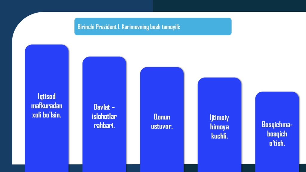 Birinchi Prezident I. Karimovning besh tamoyili:Iqtisod