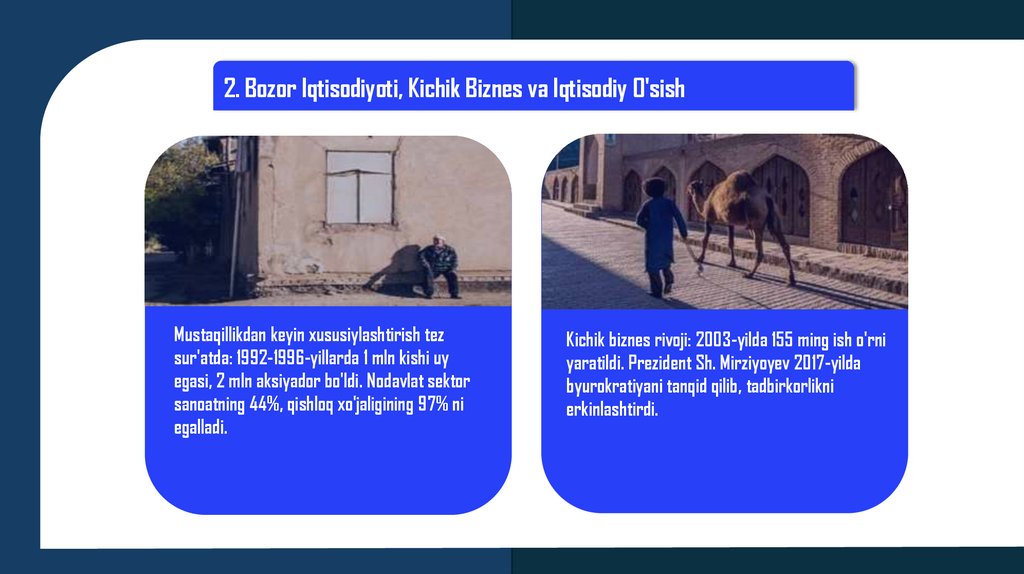 2. Bozor Iqtisodiyoti, Kichik Biznes va Iqtisodiy O'sishMustaqillikdan keyin xususiylashtirish tez