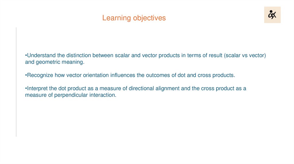 Learning objectives•Understand the distinction between scalar and vector products in terms of result (scalar vs vector)