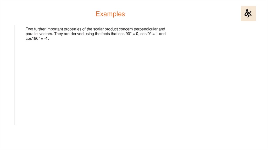 ExamplesTwo further important properties of the scalar product concern perpendicular and